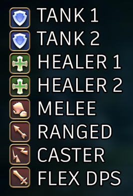 - Standard team composition: 2 tanks, 2 healers, 1 melee, 1 ranged, 1 caster & 1 FLEX (any) DPS